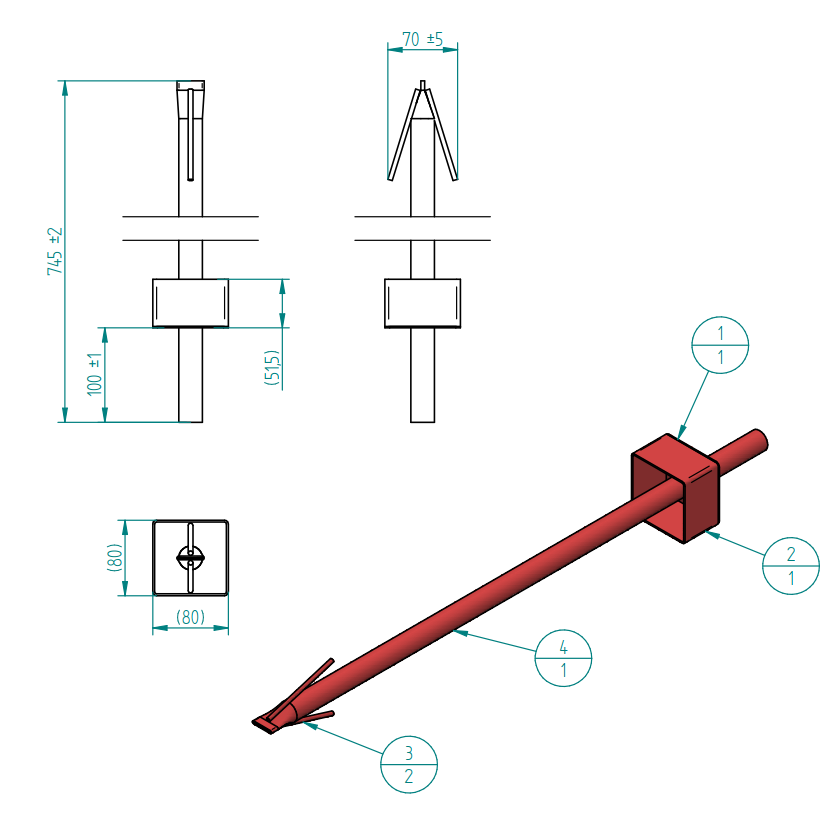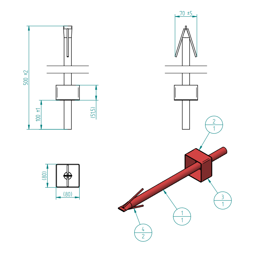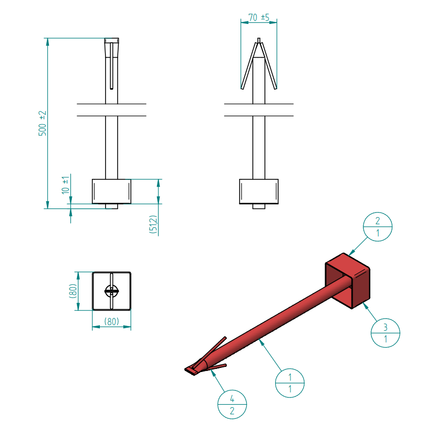 | Piiriposti toru: | Ümartoru 25×1,5mm S235 ; l-500 või l-750 |